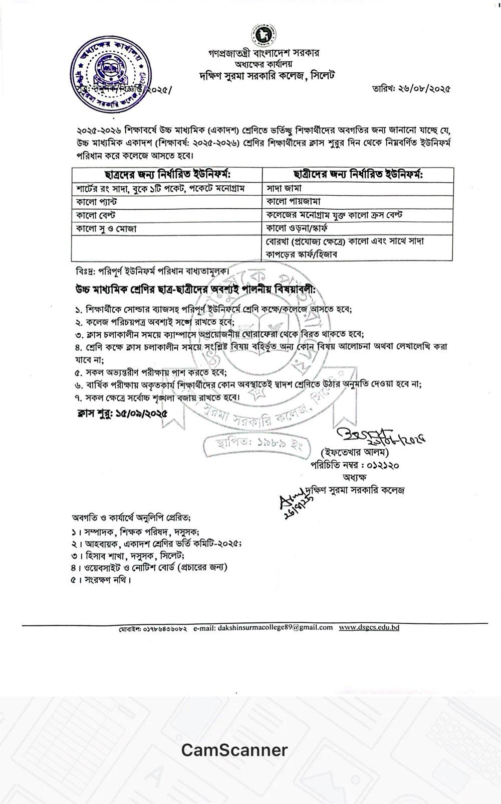 ২০২৫-২৬ শিক্ষাবর্ষে একাদশ শ্রেণিতে ভর্তিচ্ছু শিক্ষার্থীদের ইউনিফর্ম