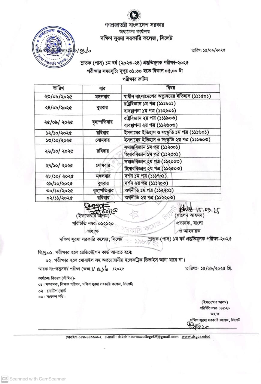 স্নাতক (পাস) ১ম বর্ষের প্রস্তুতিমূলক পরীক্ষার রুটিন