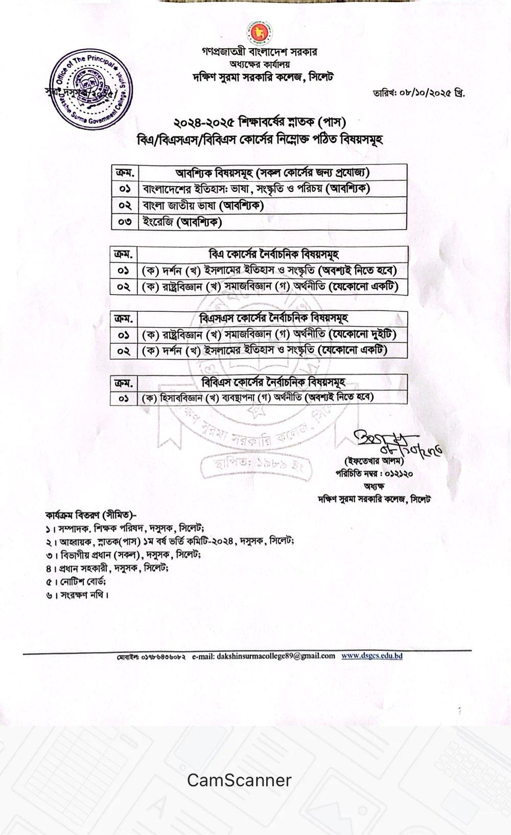 ডিগ্রি (পাস) কোর্সের পঠিত বিষয়সমূহ