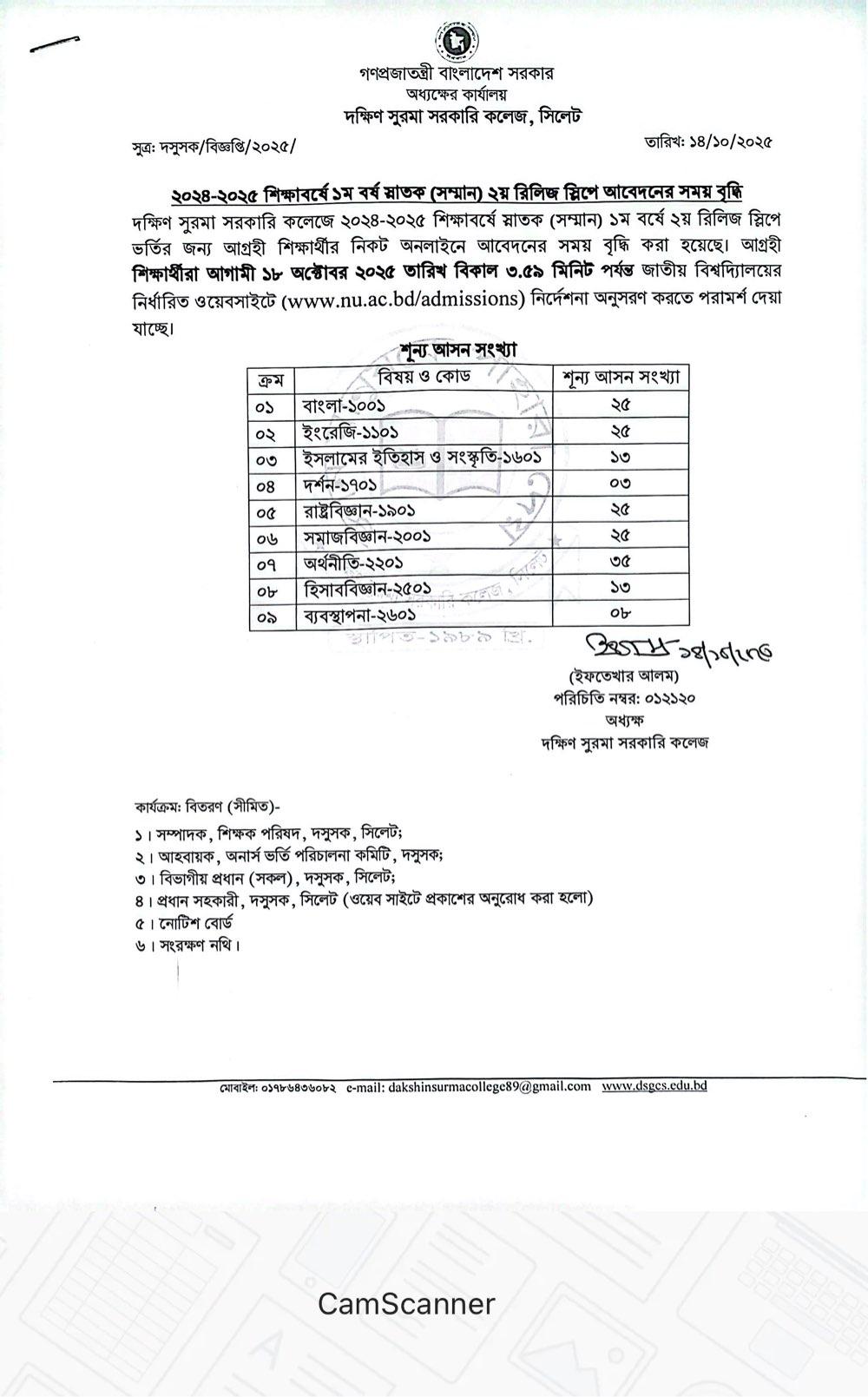 অনার্স ১ম বর্ষের ২য় রিলিজ স্লিপের আবেদনের সময় বৃদ্ধি