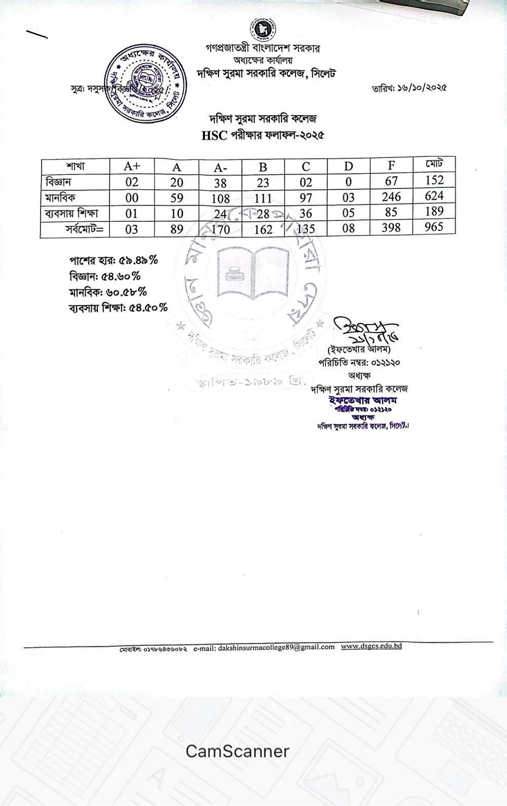 ২০২৫ সালের এইচএসসি পরীক্ষার ফলাফল বিবরণী