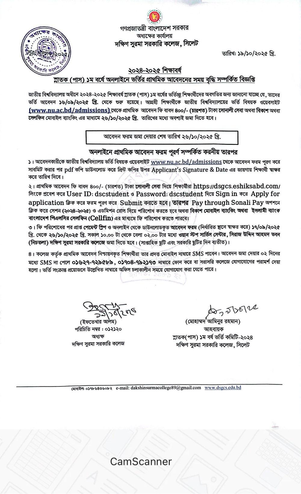 ডিগ্রি (পাস) ১ম বর্ষের ভর্তি আবেদনের সময় বৃদ্ধি
