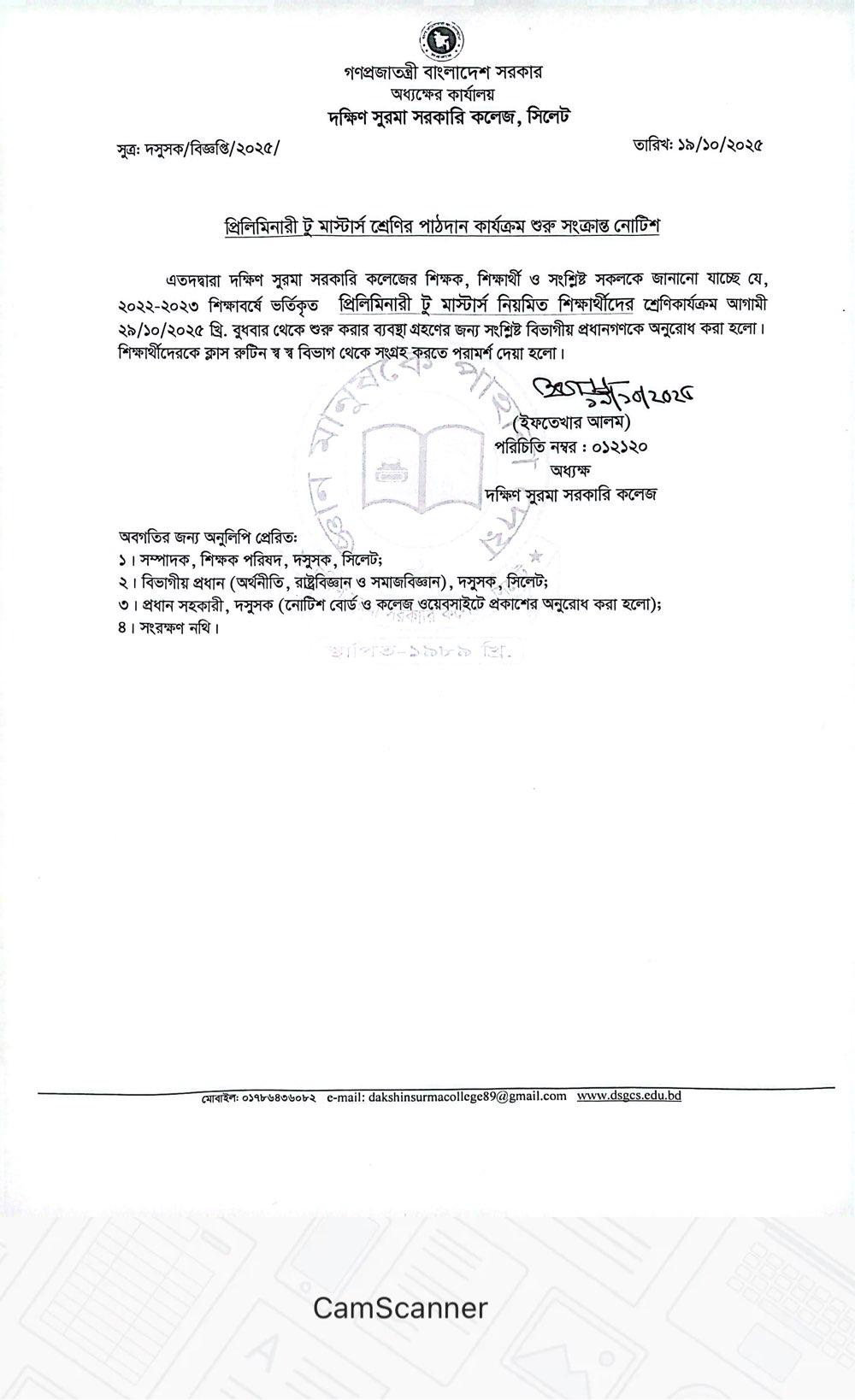 প্রিলিমিনারী টু মাস্টার্স ১ম পর্বের পাঠদান সংক্রান্ত