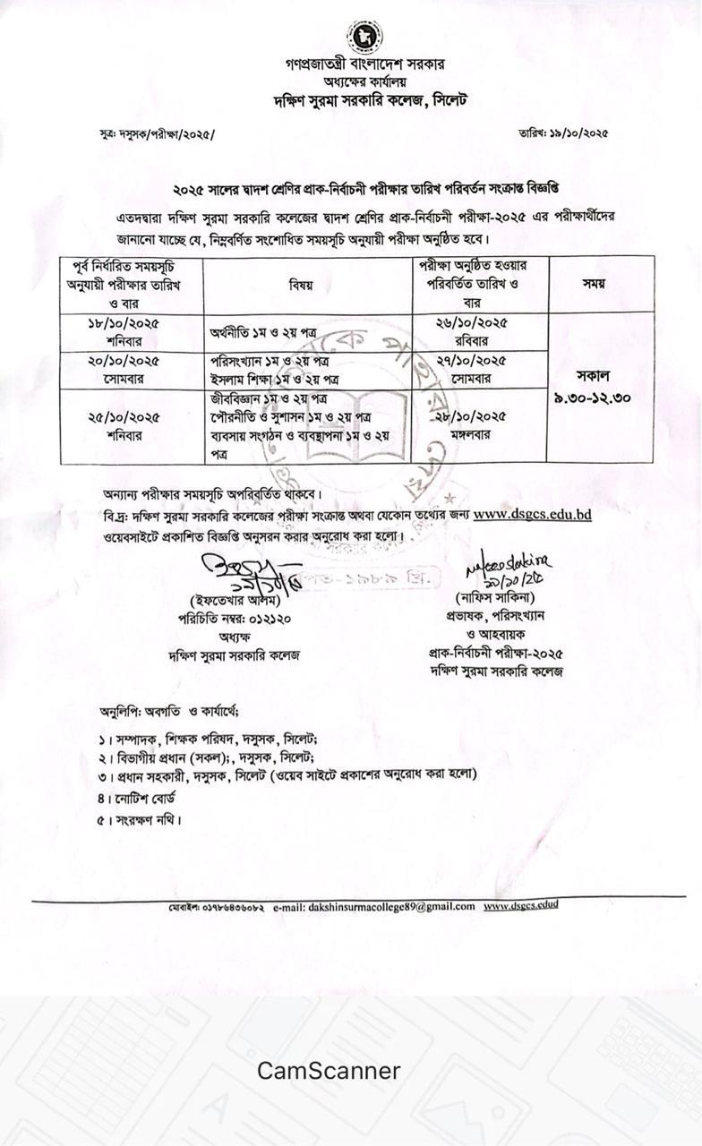 প্রাক-নির্বাচনী পরীক্ষার তারিখ ও সময় পরিবর্তন
