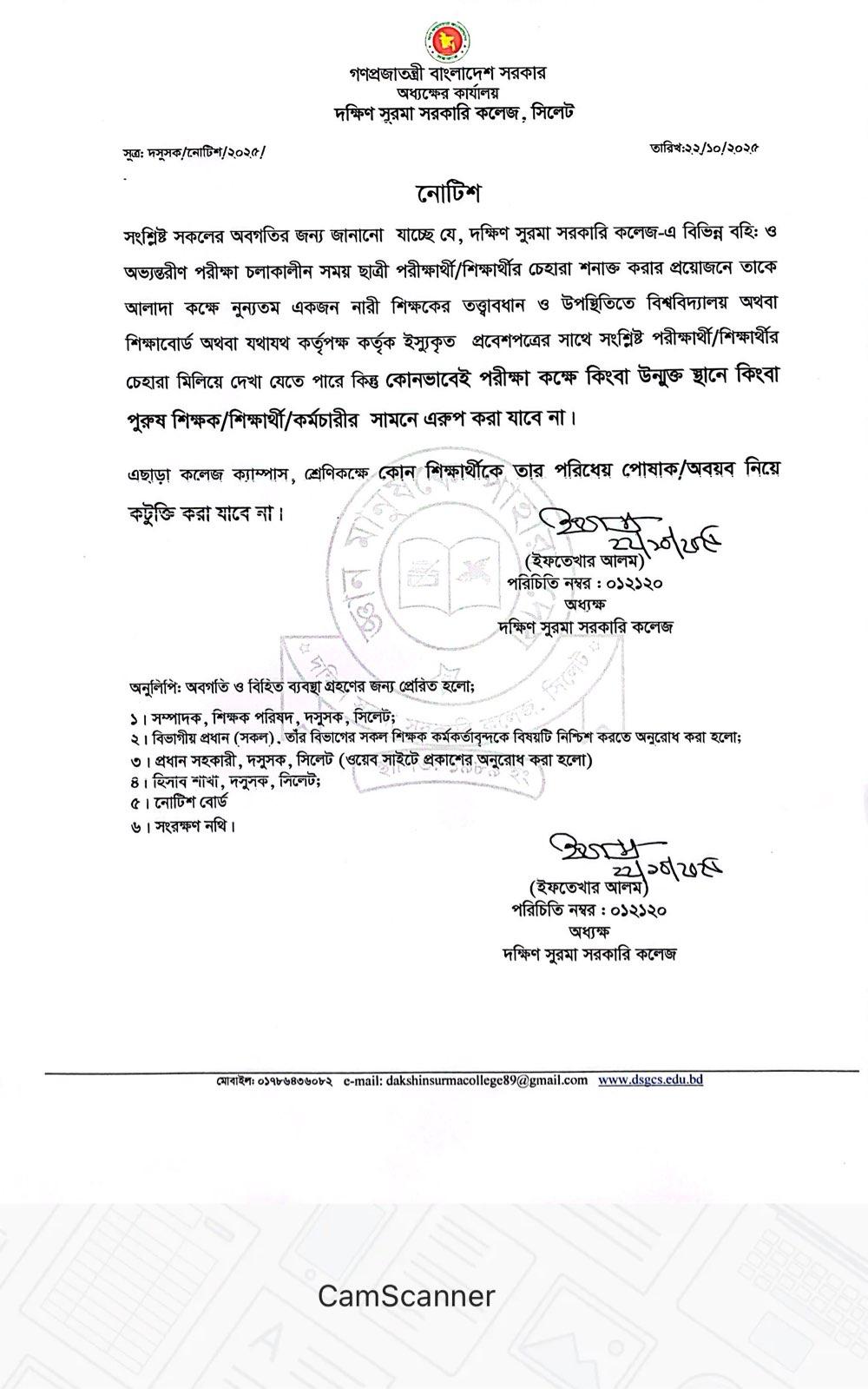 পরীক্ষায় মেয়ে শিক্ষার্থীদের চেহারা শনাক্তকরণ সংক্রান্ত